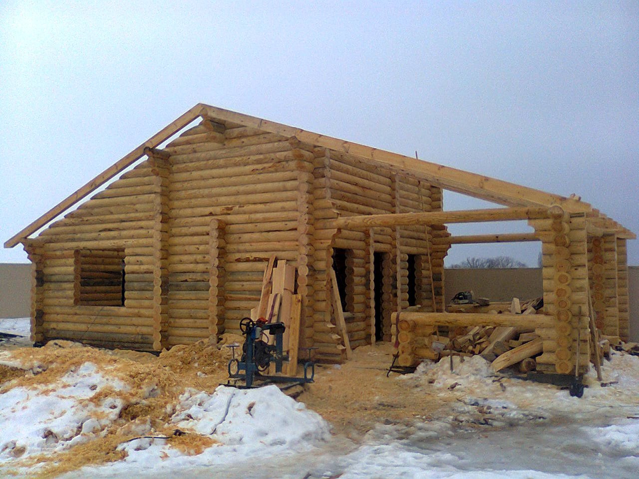 Строительство дома из зимнего леса
