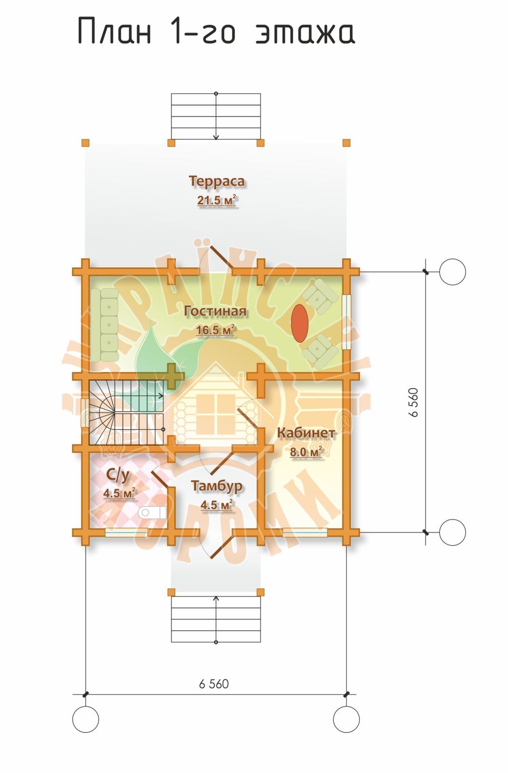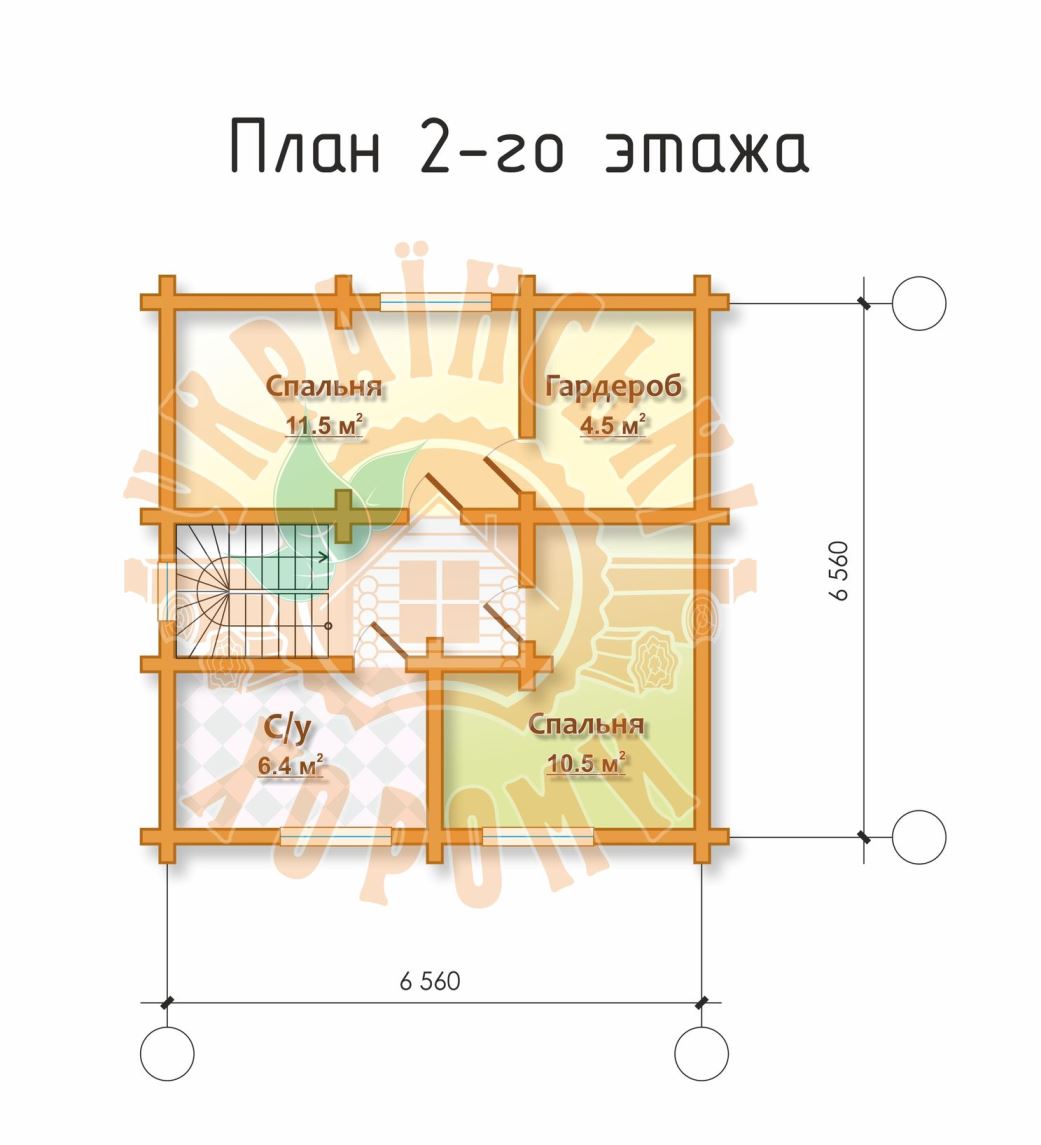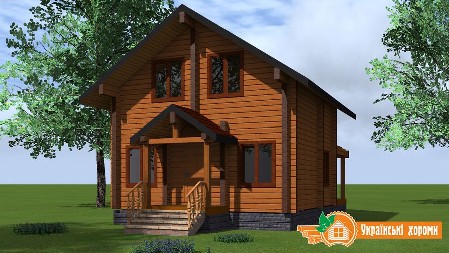 Проект №10 двухэтажного деревянного дома из профилированного бруса площадью 87,9 кв.м. Якорь