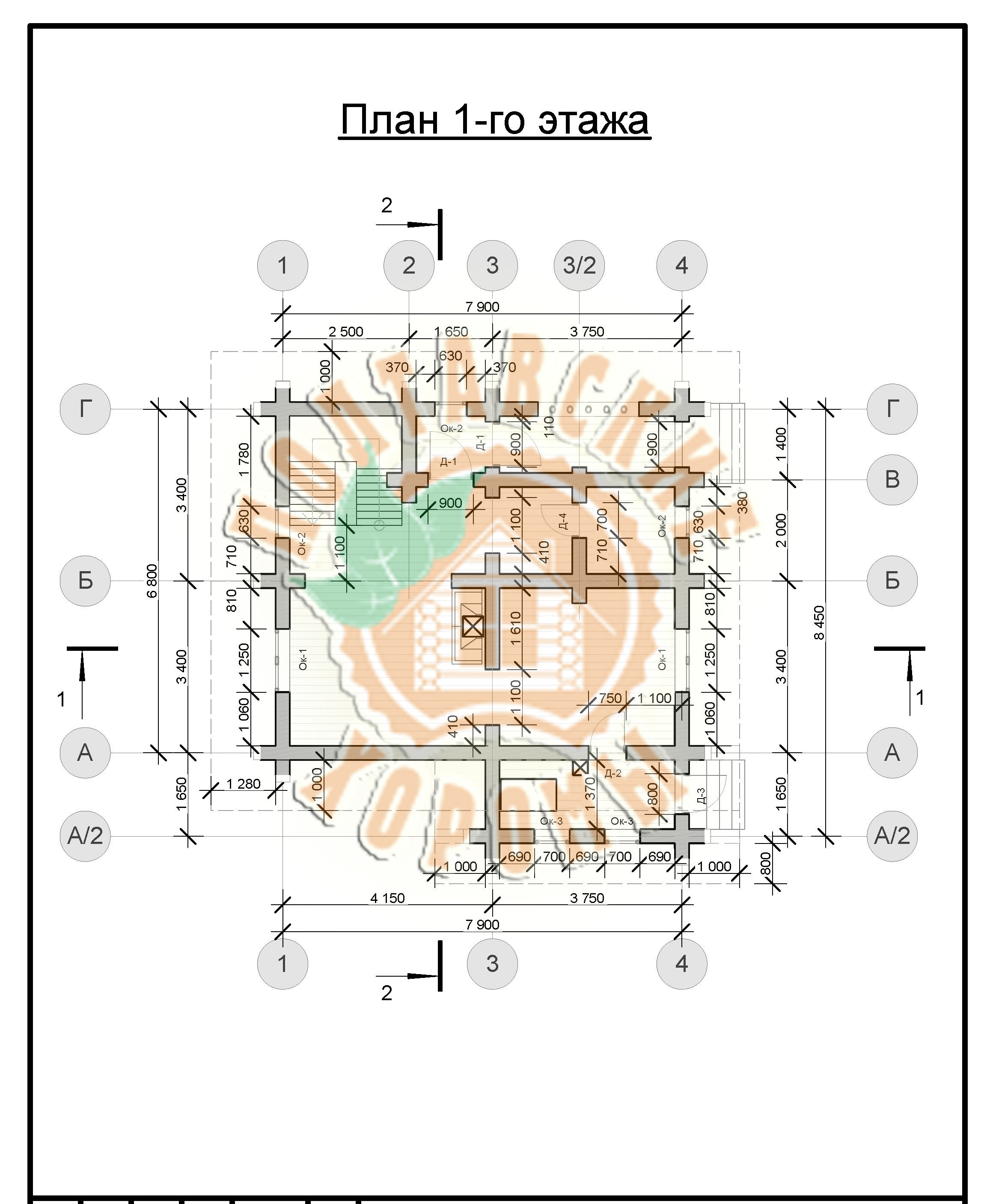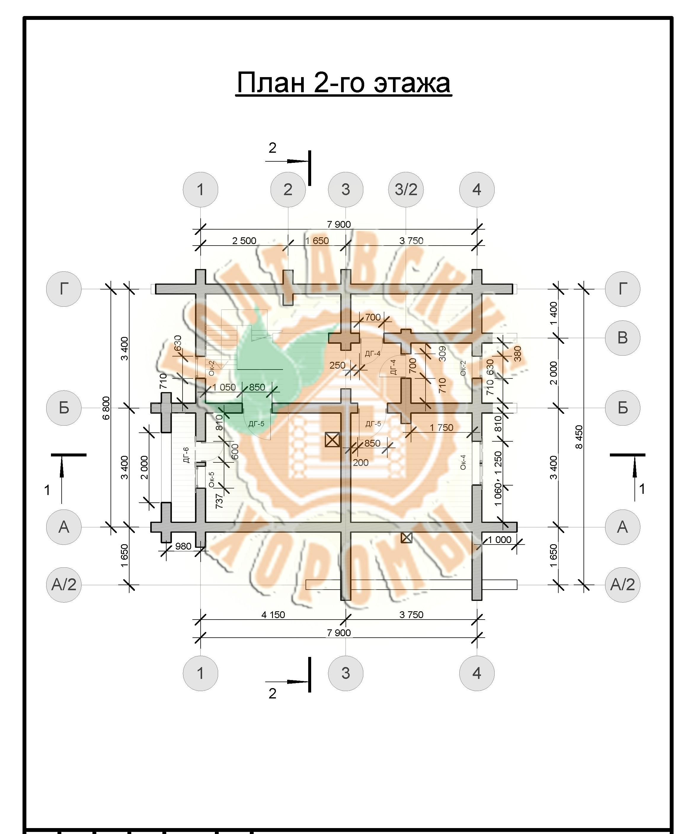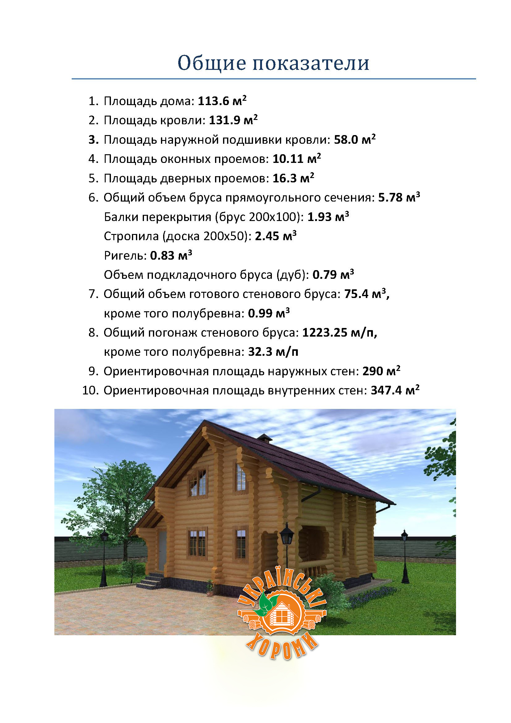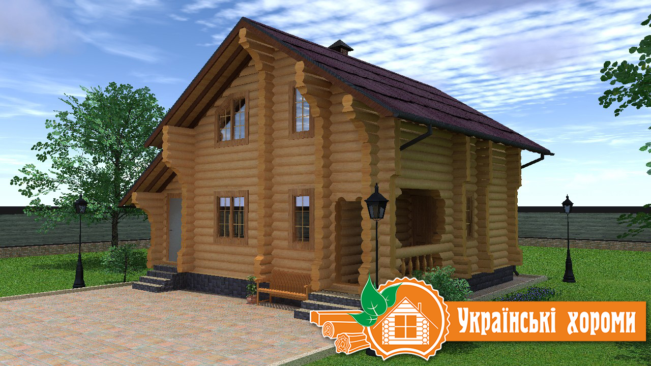 Проект №3 двухэтажного дома из оцилиндрованного бревна площадью 113,6 кв.м.