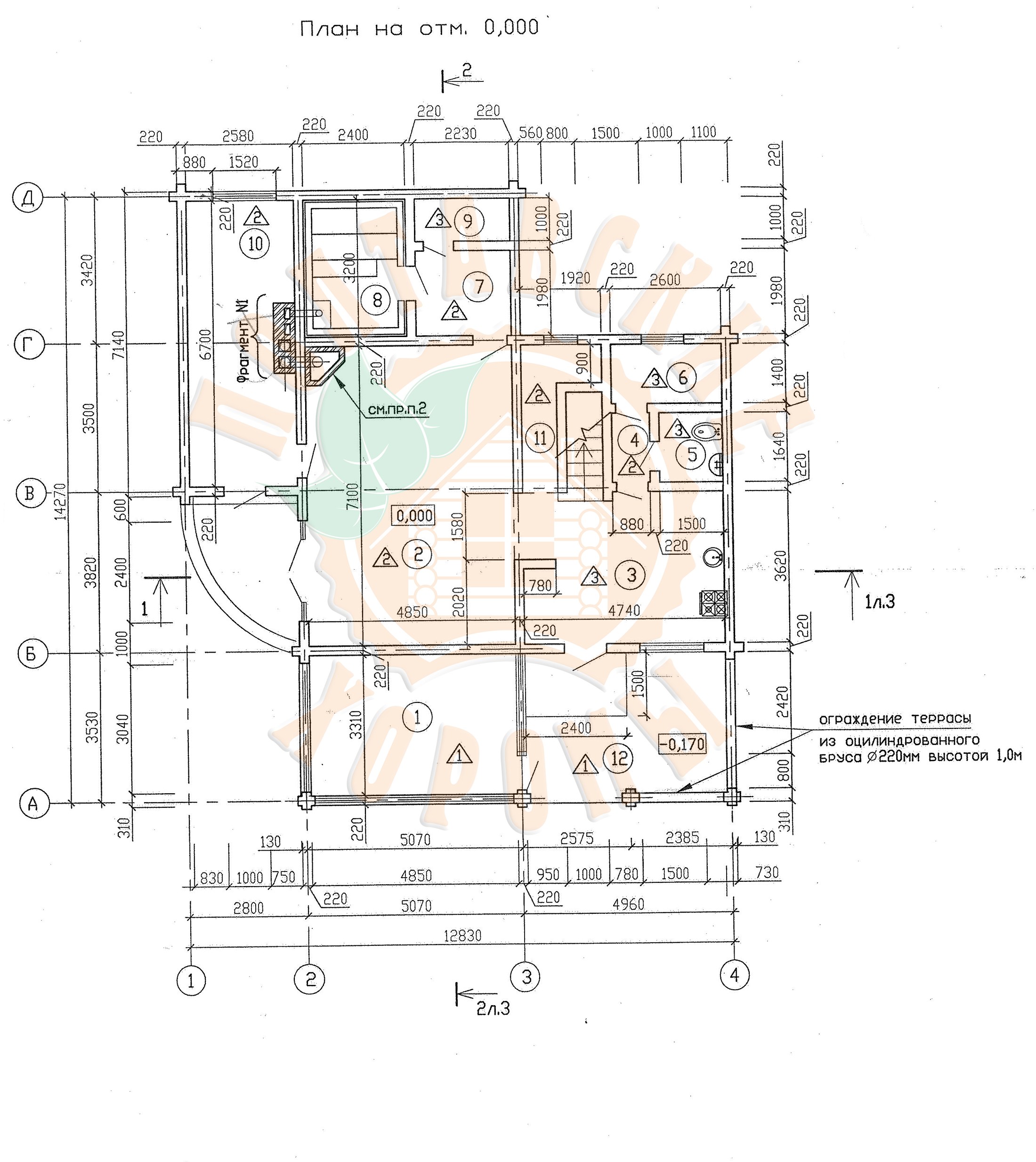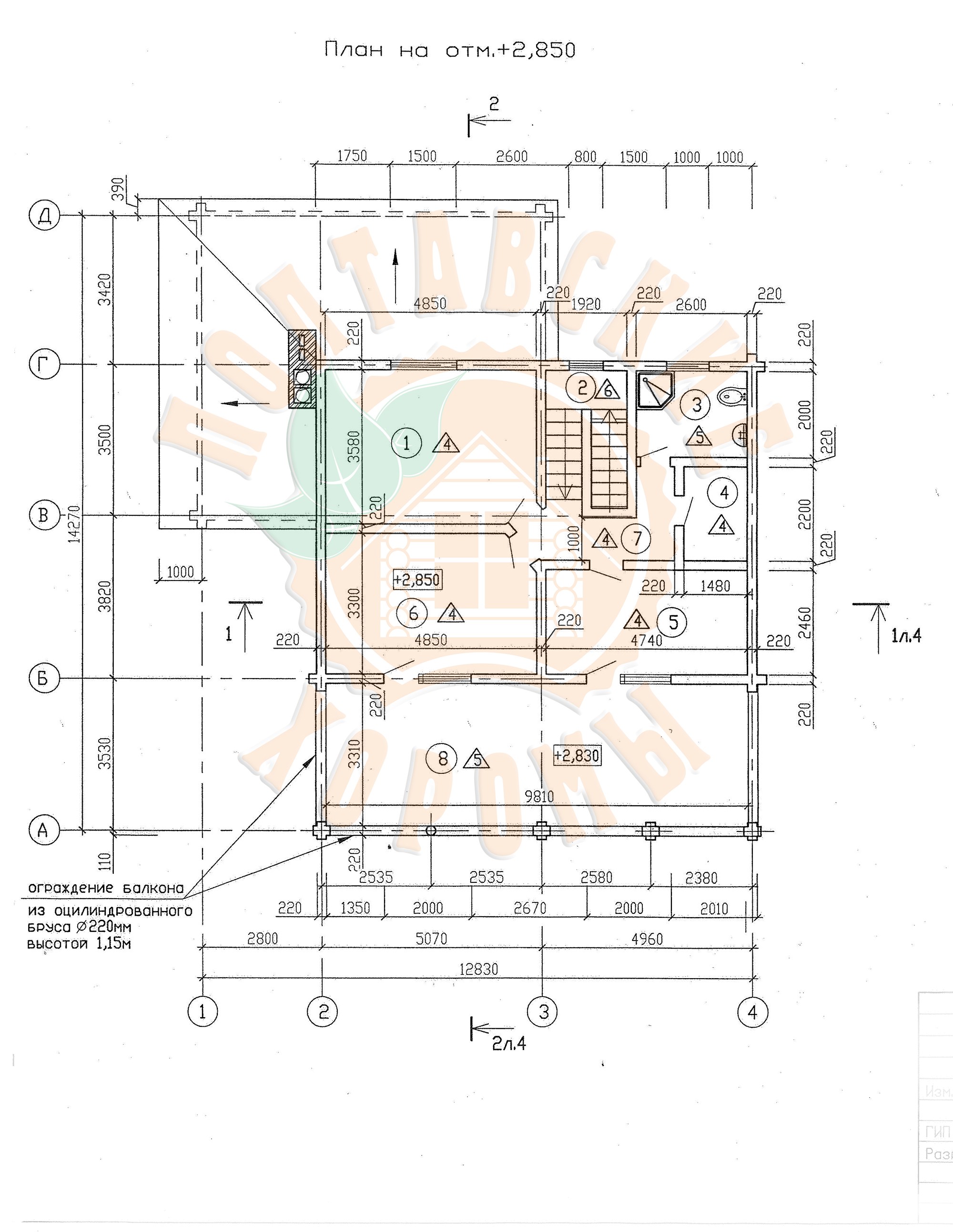 План дома. Проект №5 дома из оцилиндрованного бревна с мансардным этажем площадью 252,4 кв.м.