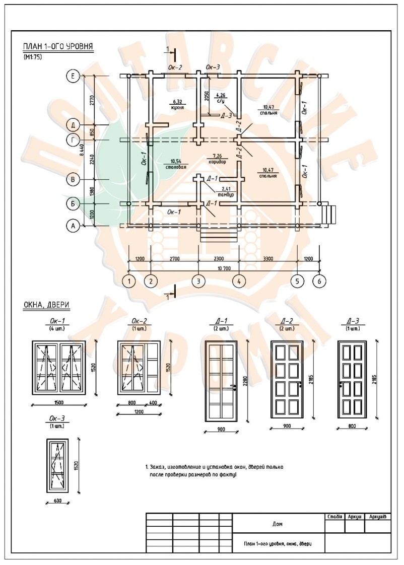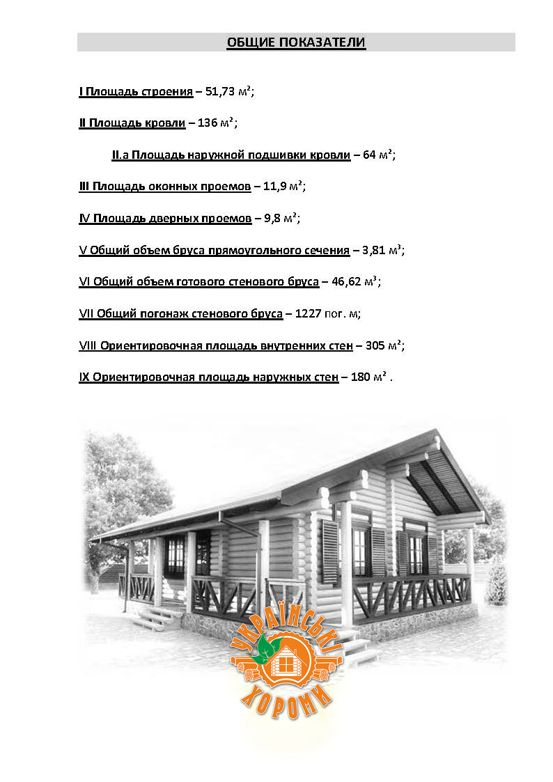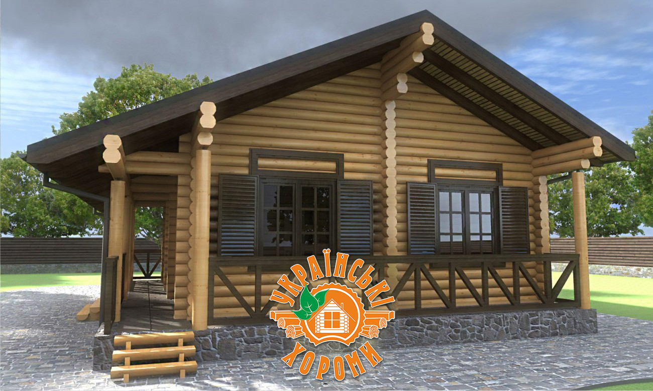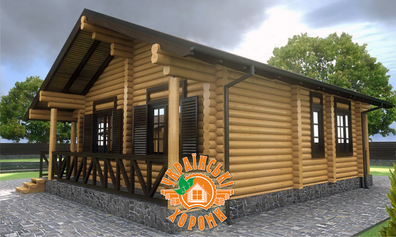 Проект №6 одноэтажного дома из оцилиндрованного бревна площадью 51,73 кв.м.